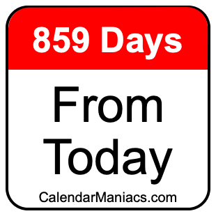 Note that there are many time zones, and the date 859 days from today depends on where you are. Therefore, when we calculated 859 days from today, we used the time and date from your computer or phone device.