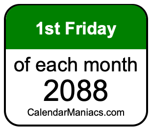 On top of that, for you calendar minimalists, we have also created a list of the 1st Fridays of each month in 2088 in the MM/DD/YY format, as you can see below: