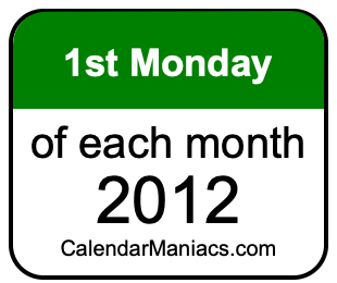 On top of that, for you calendar minimalists, we have also created a list of the 1st Mondays of each month in 2012 in the MM/DD/YY format, as you can see below: