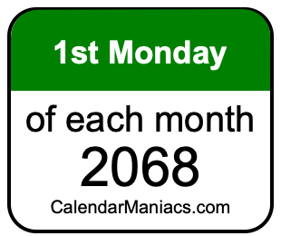 On top of that, for you calendar minimalists, we have also created a list of the 1st Mondays of each month in 2068 in the MM/DD/YY format, as you can see below: