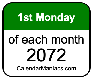 On top of that, for you calendar minimalists, we have also created a list of the 1st Mondays of each month in 2072 in the MM/DD/YY format, as you can see below: