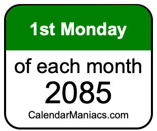 On top of that, for you calendar minimalists, we have also created a list of the 1st Mondays of each month in 2085 in the MM/DD/YY format, as you can see below: