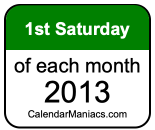 On top of that, for you calendar minimalists, we have also created a list of the 1st Saturdays of each month in 2013 in the MM/DD/YY format, as you can see below:
