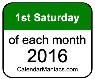 On top of that, for you calendar minimalists, we have also created a list of the 1st Saturdays of each month in 2016 in the MM/DD/YY format, as you can see below: