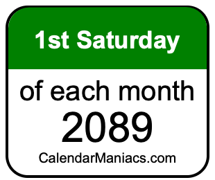 A list of first Saturdays in each month of 2089 is not all we can do. Here you can generate another list.