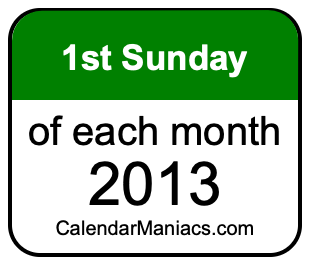 On top of that, for you calendar minimalists, we have also created a list of the 1st Sundays of each month in 2013 in the MM/DD/YY format, as you can see below: