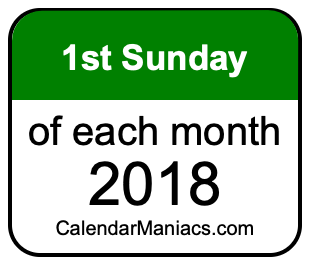 Do you need a list of the first Sundays of each month in 2018? You have come to the right place! We searched through the calendar for 2018 to find the 1st Sunday of each month in 2018. Here is the list of the first Sundays of each month in 2018 in the Weekday, Month, Day, Year format: