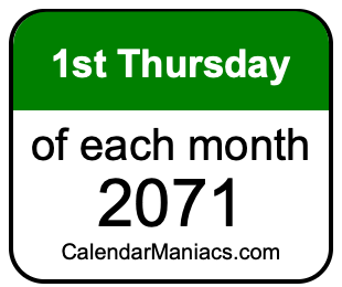 On top of that, for you calendar minimalists, we have also created a list of the 1st Thursdays of each month in 2071 in the MM/DD/YY format, as you can see below:
