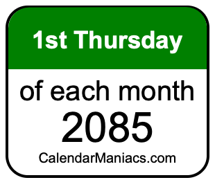A list of first Thursdays in each month of 2085 is not all we can do. Here you can generate another list.
