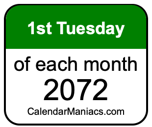 On top of that, for you calendar minimalists, we have also created a list of the 1st Tuesdays of each month in 2072 in the MM/DD/YY format, as you can see below: