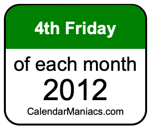 On top of that, for you calendar minimalists, we have also created a list of the 4th Fridays of each month in 2012 in the MM/DD/YY format, as you can see below: