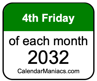 A list of fourth Fridays in each month of 2032 is not all we can do. Here you can generate another list.
