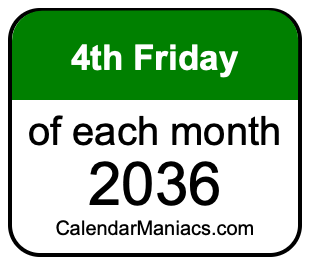 A list of fourth Fridays in each month of 2036 is not all we can do. Here you can generate another list.