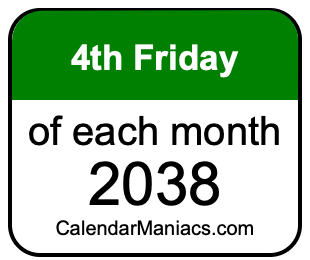 A list of fourth Fridays in each month of 2038 is not all we can do. Here you can generate another list.