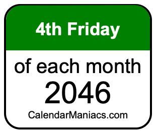 On top of that, for you calendar minimalists, we have also created a list of the 4th Fridays of each month in 2046 in the MM/DD/YY format, as you can see below: