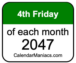 On top of that, for you calendar minimalists, we have also created a list of the 4th Fridays of each month in 2047 in the MM/DD/YY format, as you can see below: