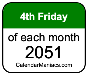 A list of fourth Fridays in each month of 2051 is not all we can do. Here you can generate another list.