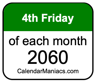 A list of fourth Fridays in each month of 2060 is not all we can do. Here you can generate another list.