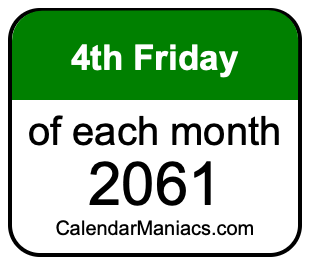 On top of that, for you calendar minimalists, we have also created a list of the 4th Fridays of each month in 2061 in the MM/DD/YY format, as you can see below: