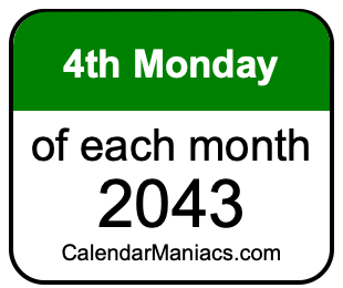 On top of that, for you calendar minimalists, we have also created a list of the 4th Mondays of each month in 2043 in the MM/DD/YY format, as you can see below: