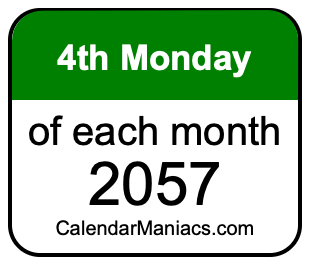 On top of that, for you calendar minimalists, we have also created a list of the 4th Mondays of each month in 2057 in the MM/DD/YY format, as you can see below: