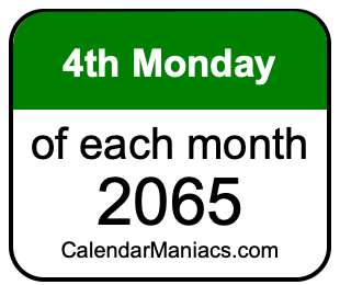 On top of that, for you calendar minimalists, we have also created a list of the 4th Mondays of each month in 2065 in the MM/DD/YY format, as you can see below: