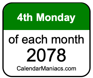 On top of that, for you calendar minimalists, we have also created a list of the 4th Mondays of each month in 2078 in the MM/DD/YY format, as you can see below: