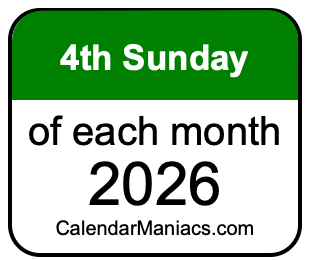 Any finally, for our visitors that use day before month in a date, here is a list of fourth Sundays in each month of 2026 in the DD/MM/YY format: