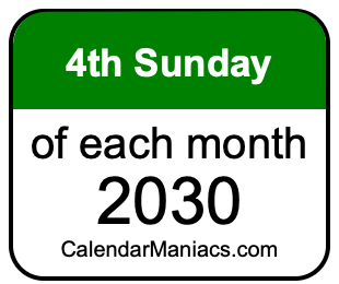 A list of fourth Sundays in each month of 2030 is not all we can do. Here you can generate another list.