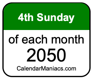 A list of fourth Sundays in each month of 2050 is not all we can do. Here you can generate another list.