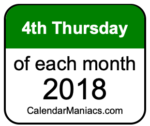 A list of fourth Thursdays in each month of 2018 is not all we can do. Here you can generate another list.