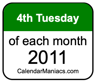 On top of that, for you calendar minimalists, we have also created a list of the 4th Tuesdays of each month in 2011 in the MM/DD/YY format, as you can see below: