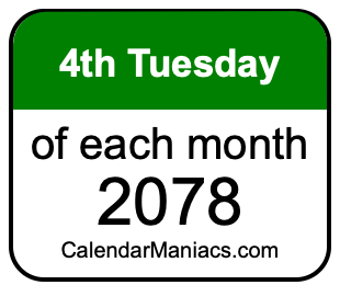 A list of fourth Tuesdays in each month of 2078 is not all we can do. Here you can generate another list.