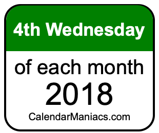 We have also created a list of the fourth Wednesdays of each month in 2018, in this format: Month, Day, Year.