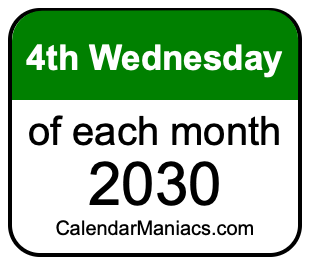 A list of fourth Wednesdays in each month of 2030 is not all we can do. Here you can generate another list.