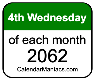 A list of fourth Wednesdays in each month of 2062 is not all we can do. Here you can generate another list.