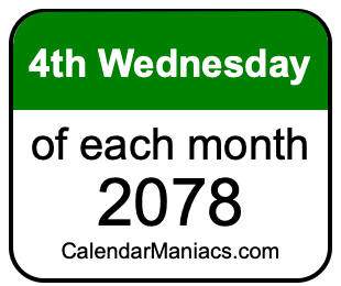 A list of fourth Wednesdays in each month of 2078 is not all we can do. Here you can generate another list.