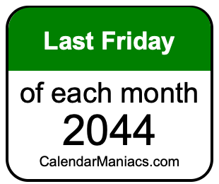 On top of that, for you calendar minimalists, we have also created a list of the last Fridays of each month in 2044 in the MM/DD/YY format, as you can see below: