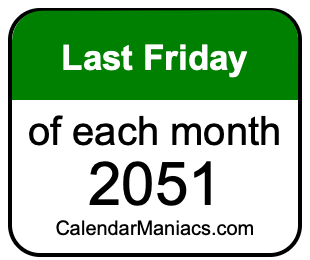 A list of last Fridays in each month of 2051 is not all we can do. Here you can generate another list.