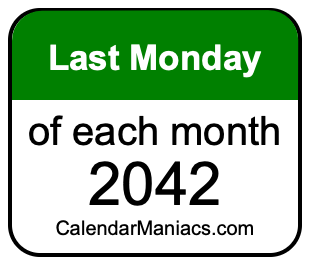 On top of that, for you calendar minimalists, we have also created a list of the last Mondays of each month in 2042 in the MM/DD/YY format, as you can see below:
