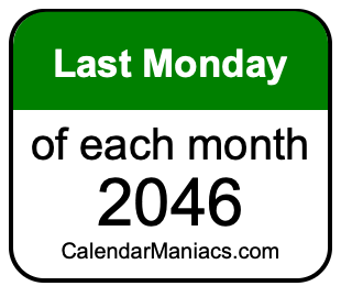 A list of last Mondays in each month of 2046 is not all we can do. Here you can generate another list.