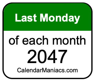 A list of last Mondays in each month of 2047 is not all we can do. Here you can generate another list.