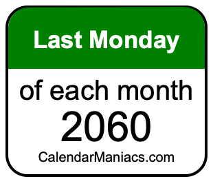 On top of that, for you calendar minimalists, we have also created a list of the last Mondays of each month in 2060 in the MM/DD/YY format, as you can see below: