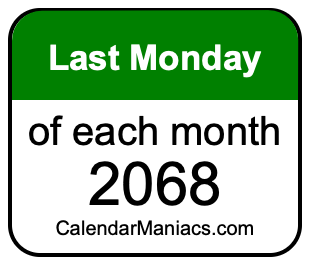 A list of last Mondays in each month of 2068 is not all we can do. Here you can generate another list.