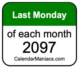 On top of that, for you calendar minimalists, we have also created a list of the last Mondays of each month in 2097 in the MM/DD/YY format, as you can see below:
