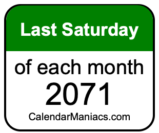 A list of last Saturdays in each month of 2071 is not all we can do. Here you can generate another list.