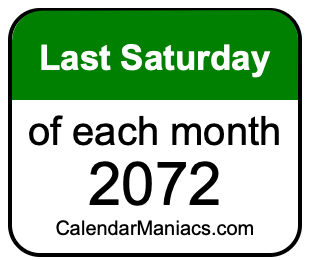 A list of last Saturdays in each month of 2072 is not all we can do. Here you can generate another list.