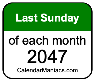 A list of last Sundays in each month of 2047 is not all we can do. Here you can generate another list.