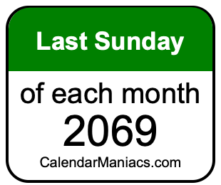 A list of last Sundays in each month of 2069 is not all we can do. Here you can generate another list.