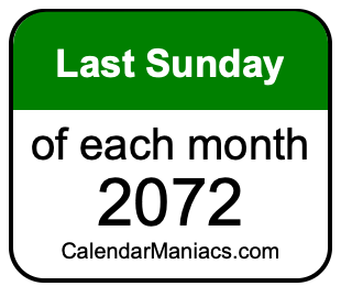 A list of last Sundays in each month of 2072 is not all we can do. Here you can generate another list.